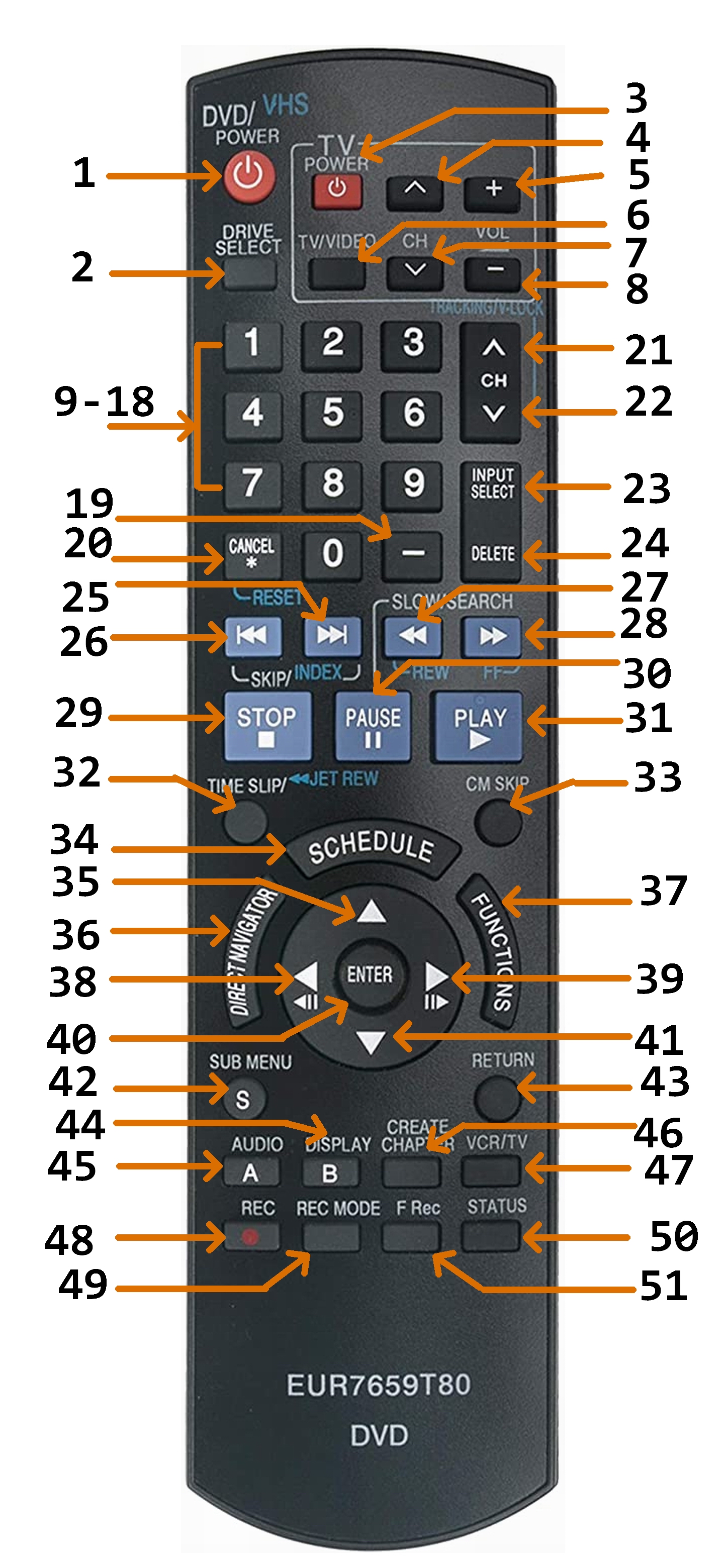 • and (still remember to) press the DVD/VCR Device Mode button (‘D’) to return to those functions.
